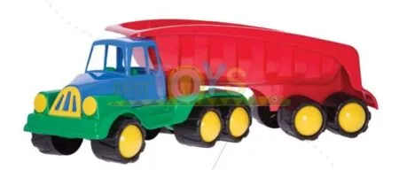 Uriasul camion are 70 cm lungime si o remorca care se rasuceste. Datorita materialului foarte rezistent din care este fabricat, fiecare copil va putea sa transporte cele mai pretioase comori si sa dea frau liber imaginatiei.