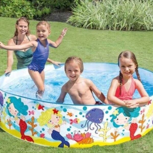 Piscina Intex nu necesita umflare si din acest motiv poate fi umpluta cu apa imediat ce a fost asezata in curte sau gradina. Materialul din care este fabricata asigura durabilitate mare si rezistenta sporita impotriva radiatiilor solare.