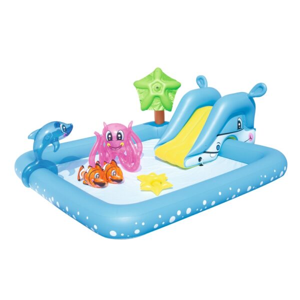 Centru de joaca Aquarium este realizat din vinil rezistent pre-testat, cu dimensiunea de 206×239 cm, ce include: