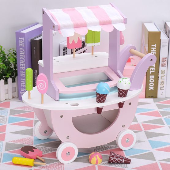 Cu un design deosebit, culori pastel, caruciorul cu inghetata isi va face loc cu succes printre jucariile preferate ale copilului tau.