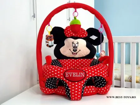 Fotoliu Bebe Cu Arcada Minnie Buline Rosu Personalizat + Cadou