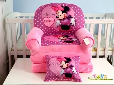 Fotoliu Extensibil Copii 3 Placi Minnie Roz Personalizat Si Pernuta + Cadou