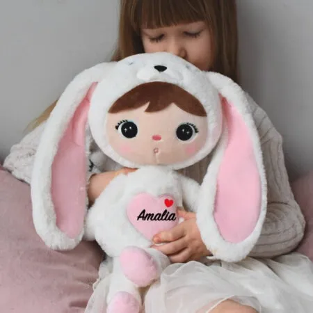 Cu un aspect dragalas, Jucariea personalizata de plus Iepuras Alb 50 cm, este un cadou cu care nu veti da gres, poate fi oferita la botez, zile de nastere etc