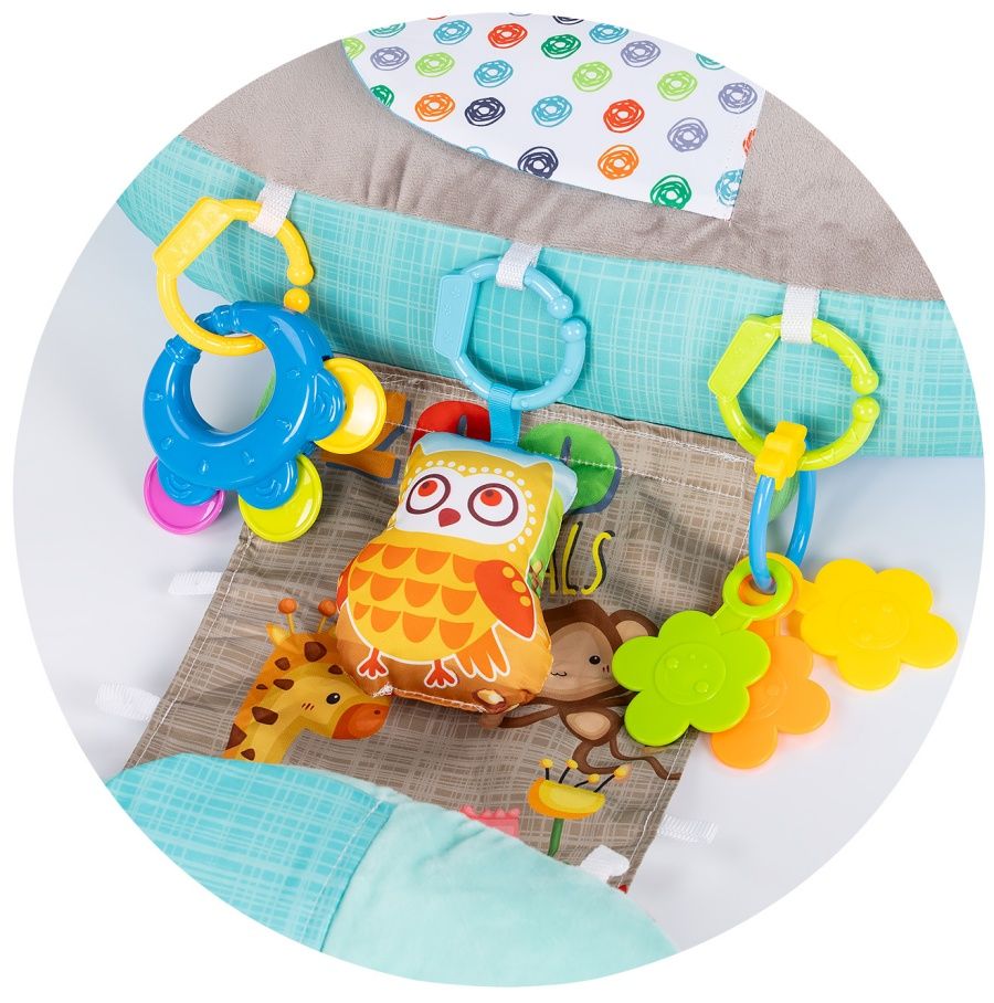 - Centru de activități: Jucăriile atașate mențin bebelușul ocupat și fericit.