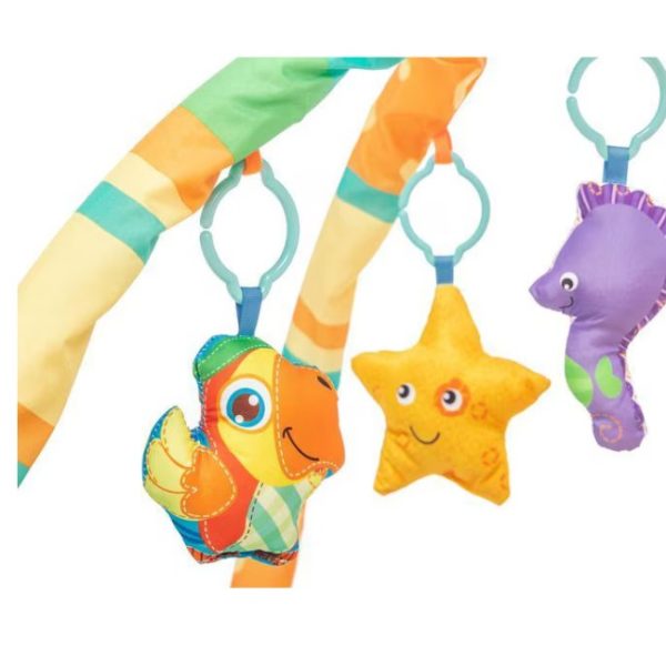 Pachetul conține: 1 x Salteluță de joacă, 2 x Arcade flexibile, 5 x Jucării suspendate.