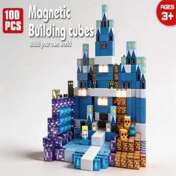 95.00 leiSet 100 cuburi magnetice de construit Minecraft Night CastlePerna Multifunctionala 5 în 1 pentru Bebelusi Roz