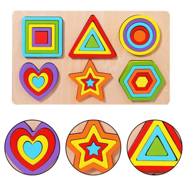 Puzzle incastru 3D cu 6 forme geometrice tip curcubeu